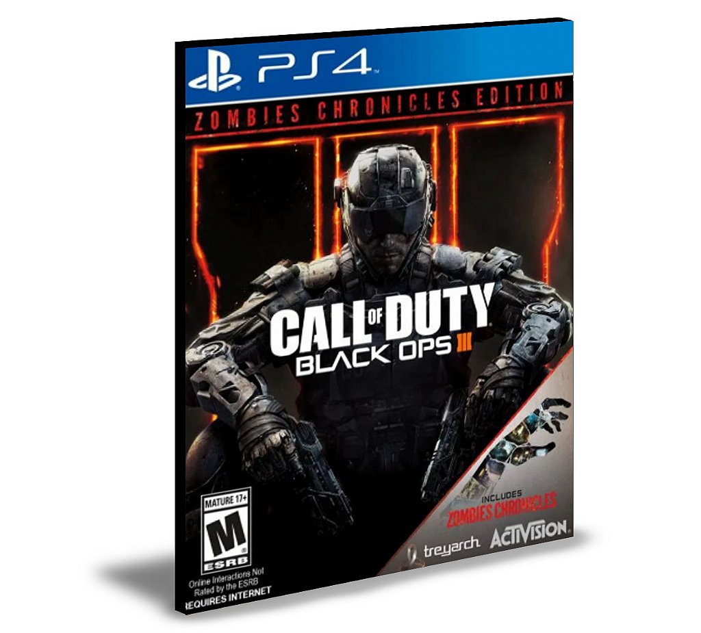 Call of Duty®: Black Ops III Edição Zombies Chronicles inclui o jogo base completo e o conteúdo da expansão Zombies Chronicles.